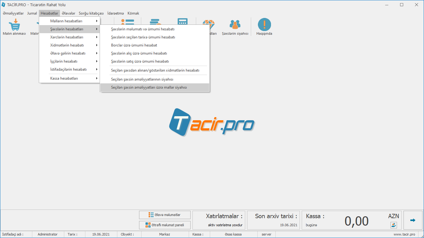 Hesabatlar > Şəxslərin hesabatları > Seçilən şəxsin əməliyyatları üzrə mallar siyahısı