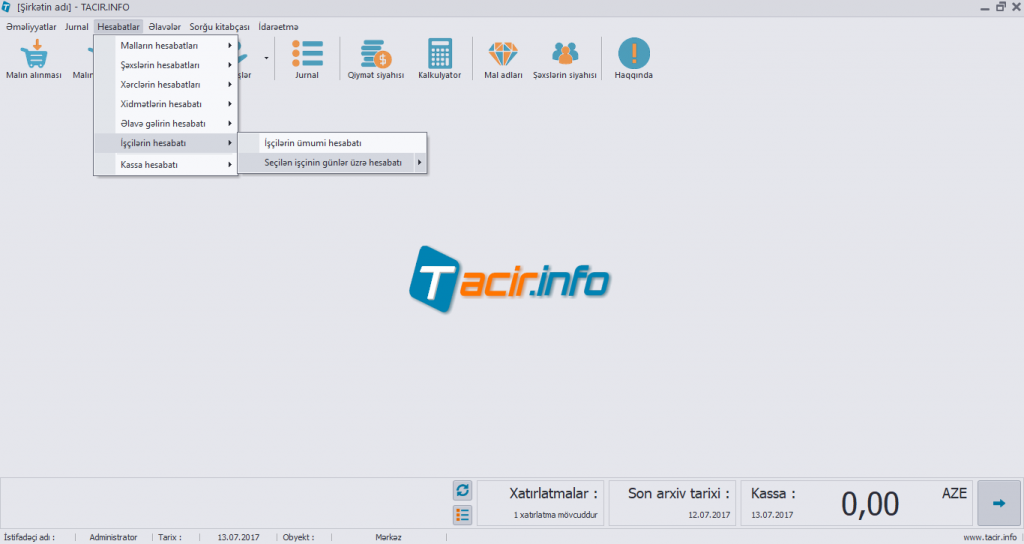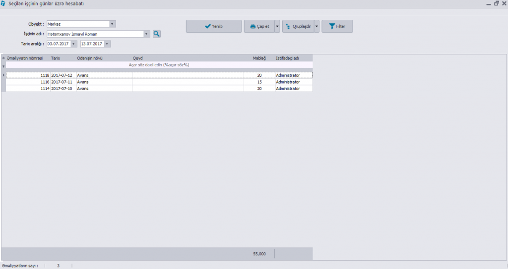 Hesabatlar > Əməkdaşlar üzrə hesabat > Seçilən əməkdaşın günlər üzrə hesabatı