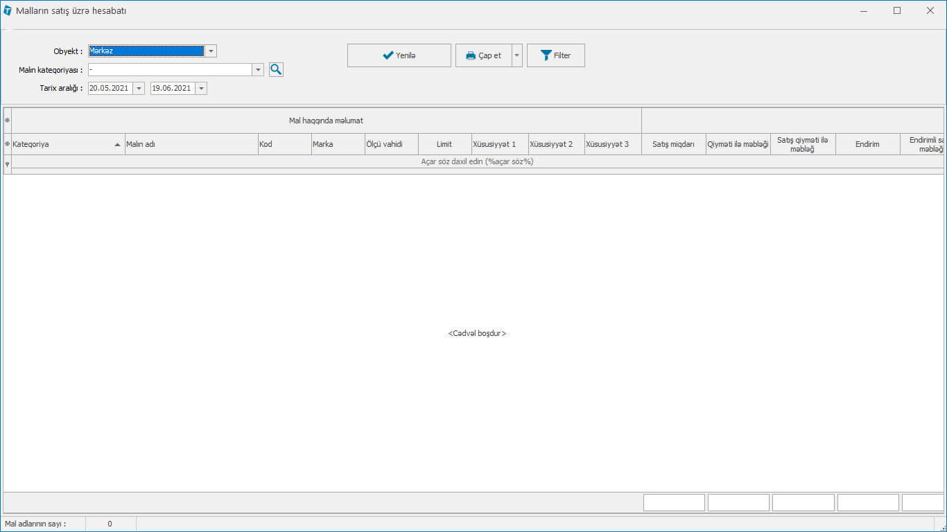 Hesabatlar > Malların hesabatı > Malların satış üzrə hesabatı
