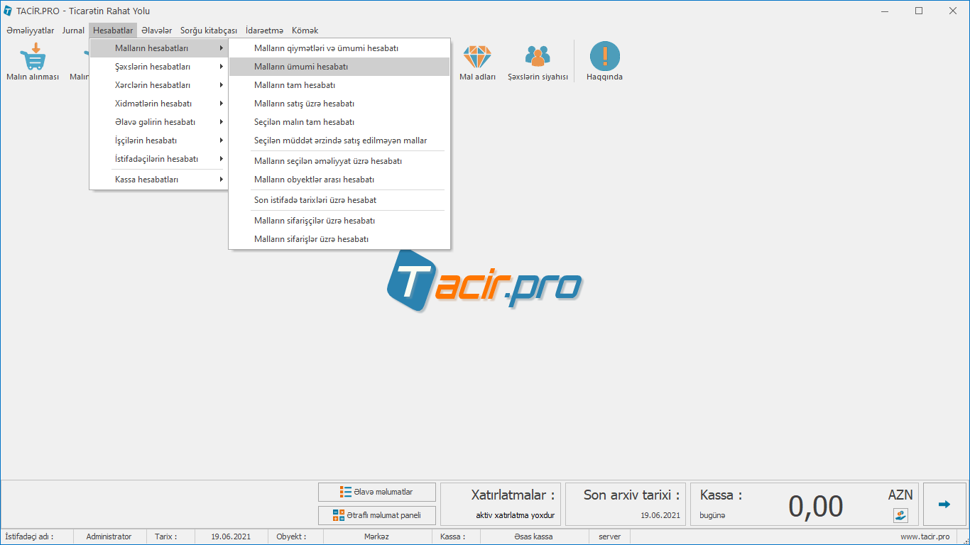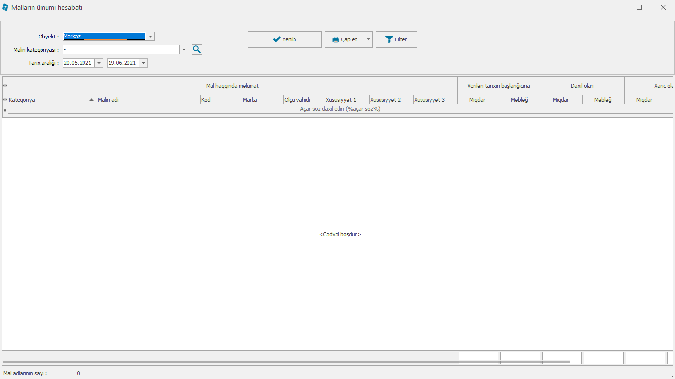 Hesabatlar > Malların hesabatı > Malların ümumi hesabatı