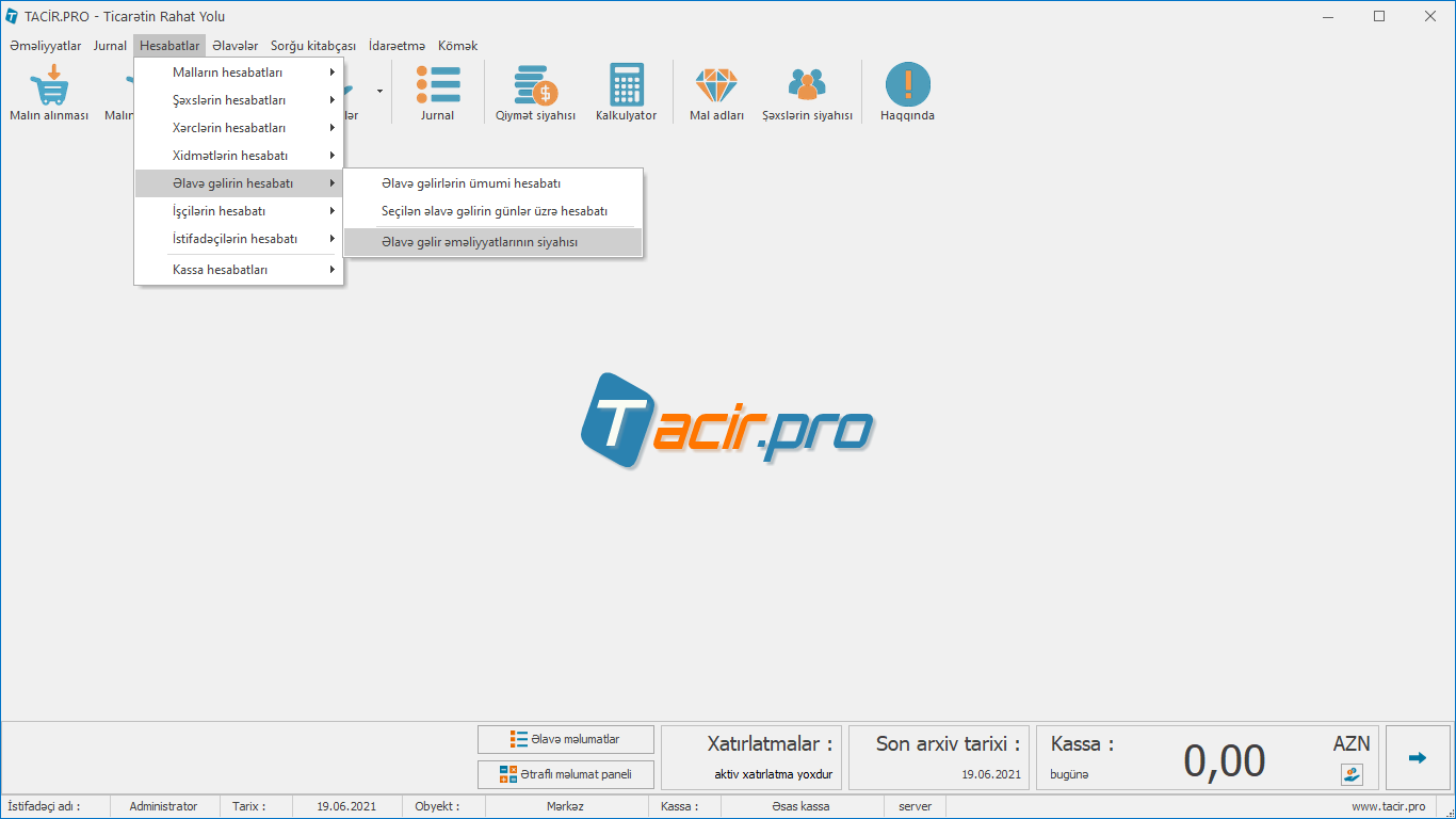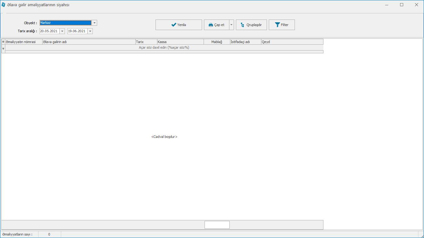 Hesabatlar > Əlavə gəlirin hesabatı > Əlavə gəlir əməliyyatlarının siyahısı
