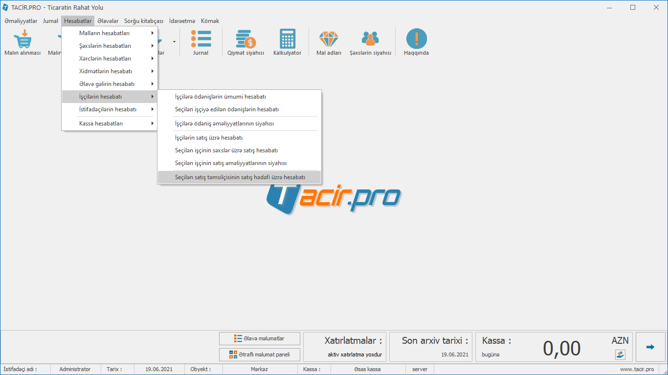 Hesabatlar > Əməkdaşlar üzrə hesabat> Seçilən satış təmsilçisinin satış hədəfləri üzrə hesabat