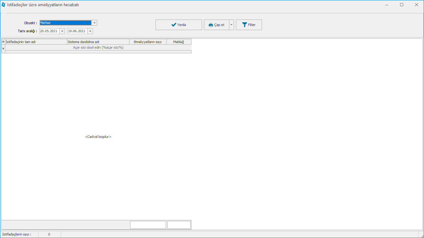 İstifadəçilər üzrə əməliyyatların hesabatı